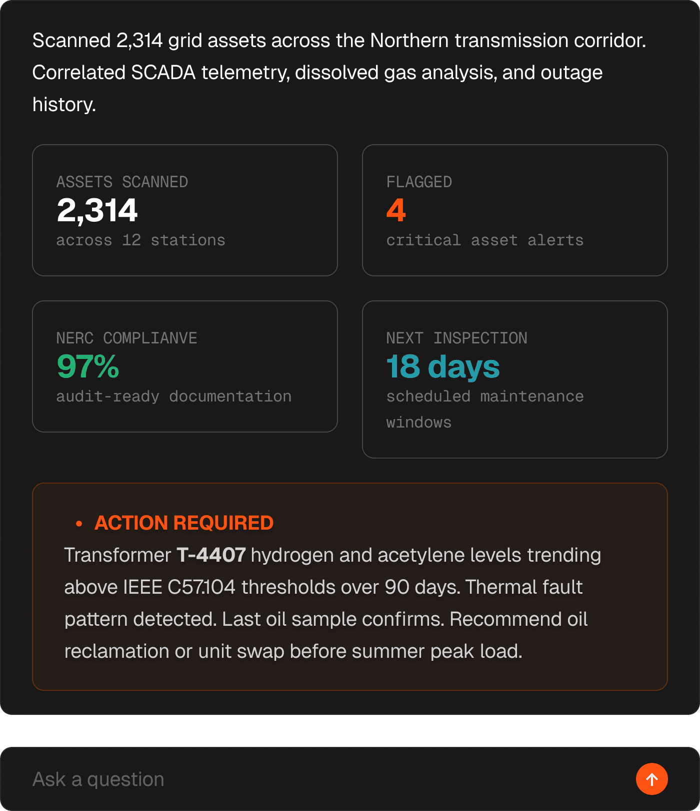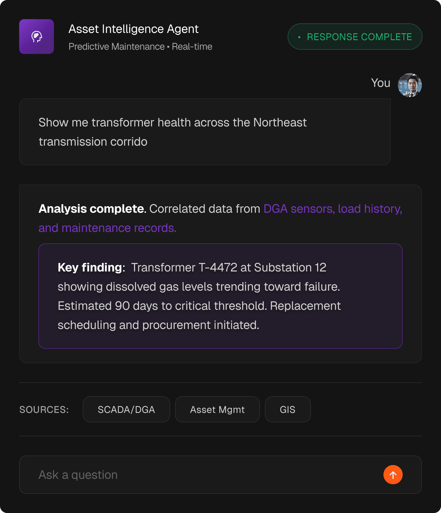 Deploy agents that reason across GIS, SCADA, and your utility systems with human-in-the-loop review at every critical step.