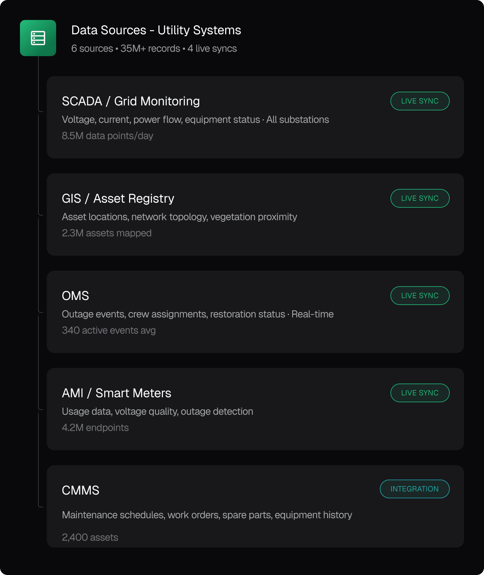 Unify data from SCADA, GIS, OMS, asset management, and field systems into a live knowledge graph. Every asset stays in sync no data lake required.