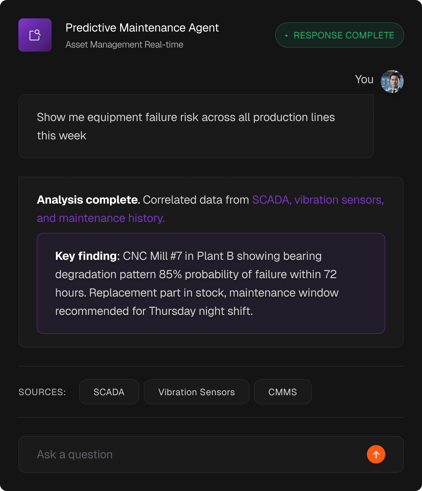 Fully customizable: Tailor AI agents to your unique production processes, quality standards, and safety protocols.